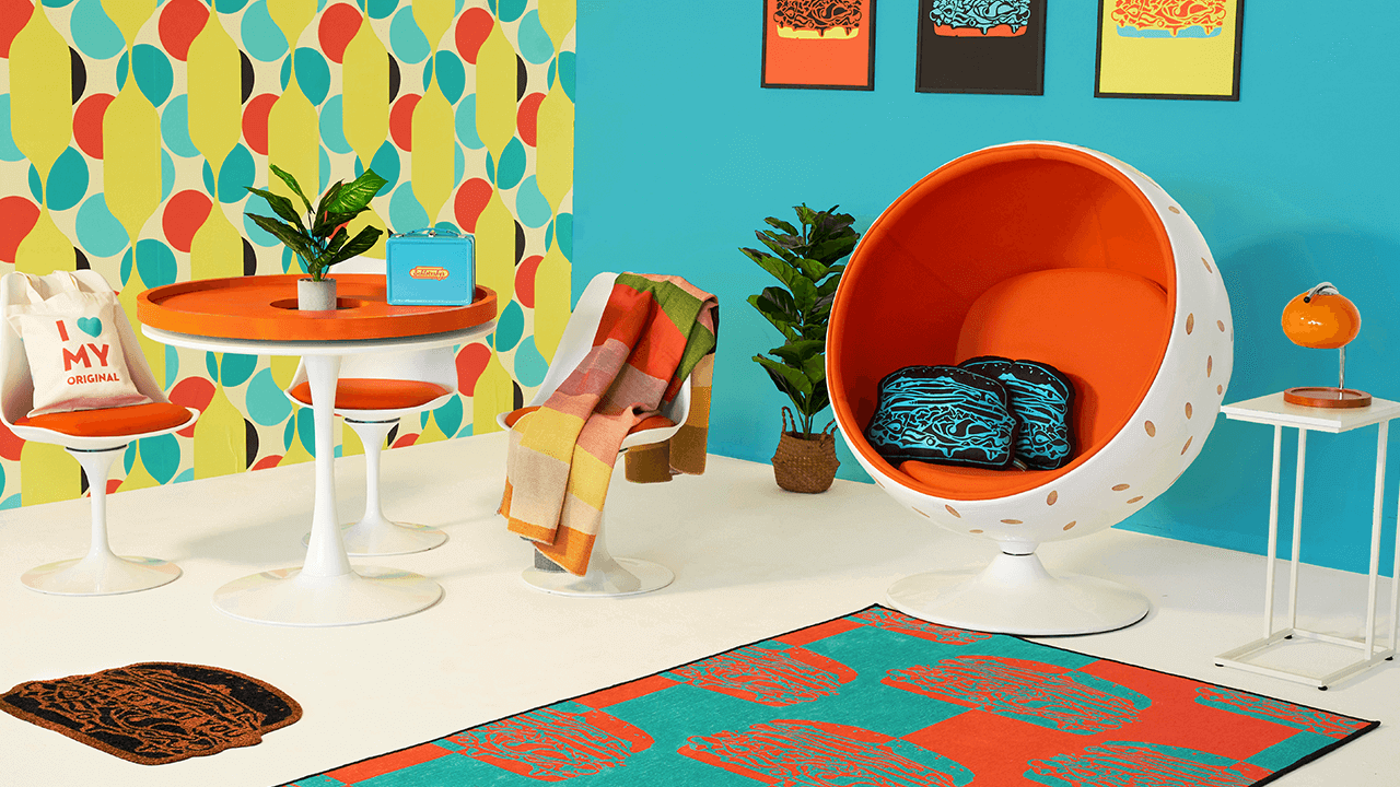 The Original®, the very first menu item by Schlotzsky's, featuring ham, Genoa and Cotto salami, tomato, lettuce, onion, three cheeses, olives, mustard, and signature sauce on a sourdough bun baked from scratch each day, has left a mark on the world of sandwiches, and now its legacy will transcend beyond the restaurant and into your home. Picture styling your living space into a cozy haven of ‘70s inspired sandwich core aesthetic with retro wallpaper, pop art patterned sandwich rug, bun-inspired pod chair and crocheted blanket representing the 13 ingredients of the iconic sandwich.